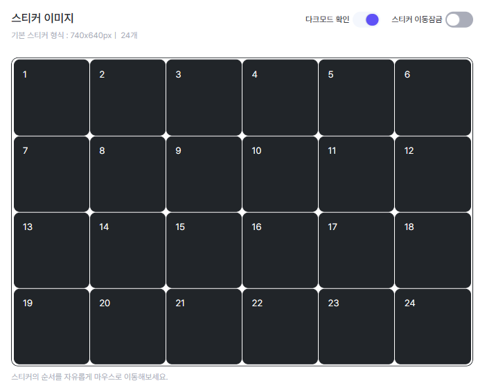 OGQ이모티콘 제작을 위해서는 24가지의 이미지가 필요로 합니다. 그리고 이미지 사이즈마다 꽉 채울지, 아니면 작게 제작할지에 대해 고민이 있으실텐데요. 이건 취향 차이일 듯 해요!